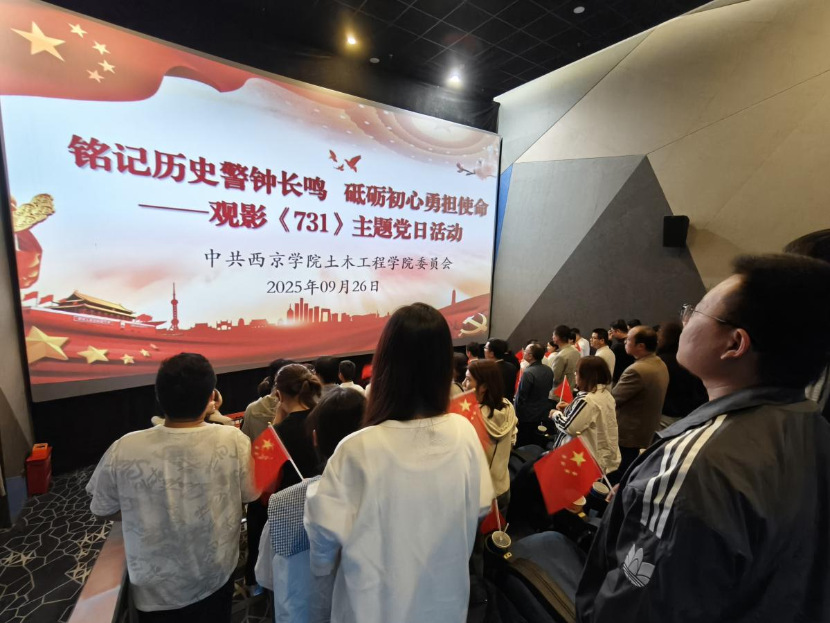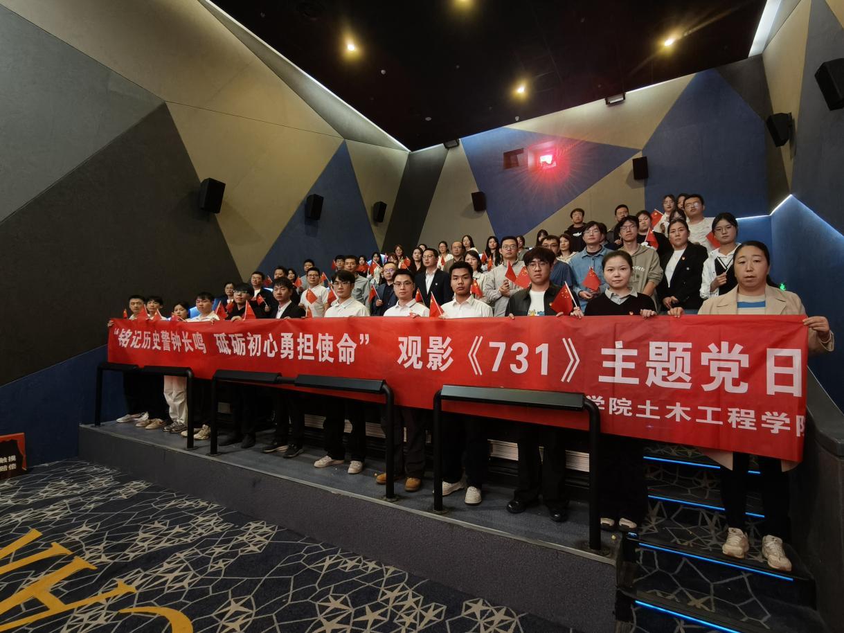 9月26日下午,土木工程学院党委组织师生党员开展“铭记历史,警钟长鸣;砥砺初心,勇担使命”为主题的观影活动,集体观看了历史影片《731》。学院近60名党员和学生干部代表参加活动。