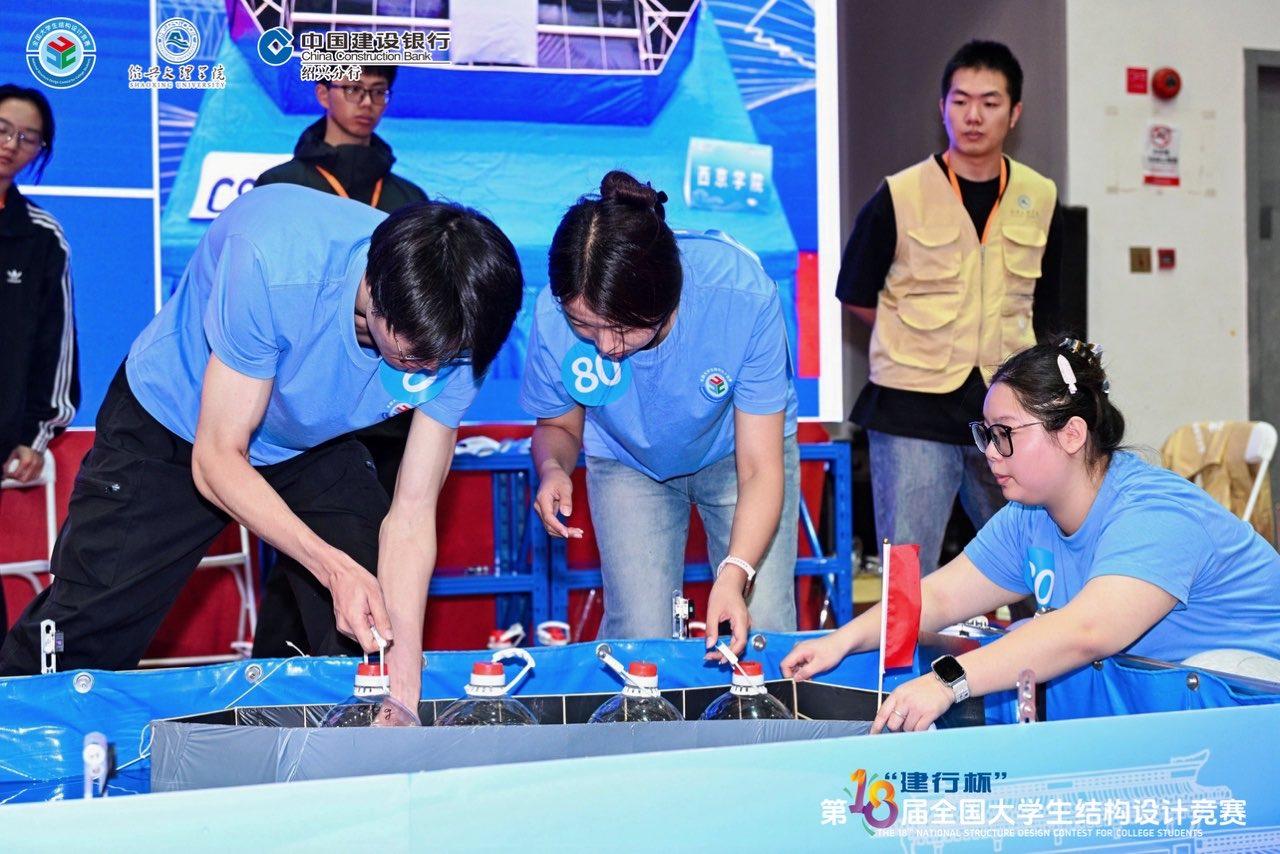 作为土木工程领域极具影响力的国家级赛事,本次竞赛流程严谨、竞争激烈。10月16日至18日,参赛团队依次完成模型制作、预安装检测及理论分析等关键环节,我校学子精准把控结构设计原理,精益求精打磨模型细节;10月19日的现场加载环节中,团队设计的模型凭借合理的结构布局、优异的承载性能,顺利通过多轮严苛测试,展现了扎实的工程设计素养。