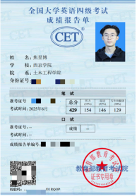 星光不会辜负那些勤勉奋进之人,岁月亦不会辜负那些矢志笃行之士。四级考试的顺利通关并非终点,而是迈向更为广阔发展空间的起点。期望每一位土木工程专业的学子都能从榜样身上获取前行的动力,将坚持不懈的精神融入日常学习生活,将知识的积累融入每一个细微之处,在英语学习与专业成长的道路上持续前行,永不止步。