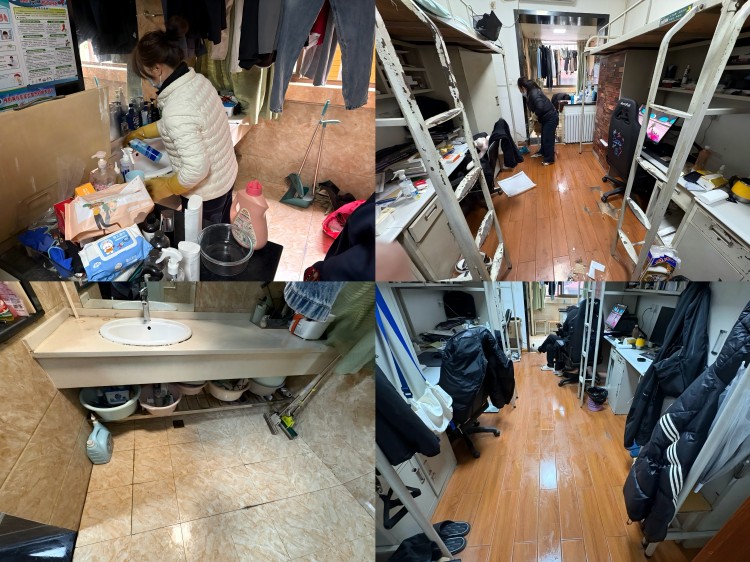 同期,实操演练在4号公寓楼121、122宿舍进行。讲师以预设的杂乱宿舍为示范场景,现场演示被子快速折叠、衣物省空间收纳、数据线整理等实用技能。